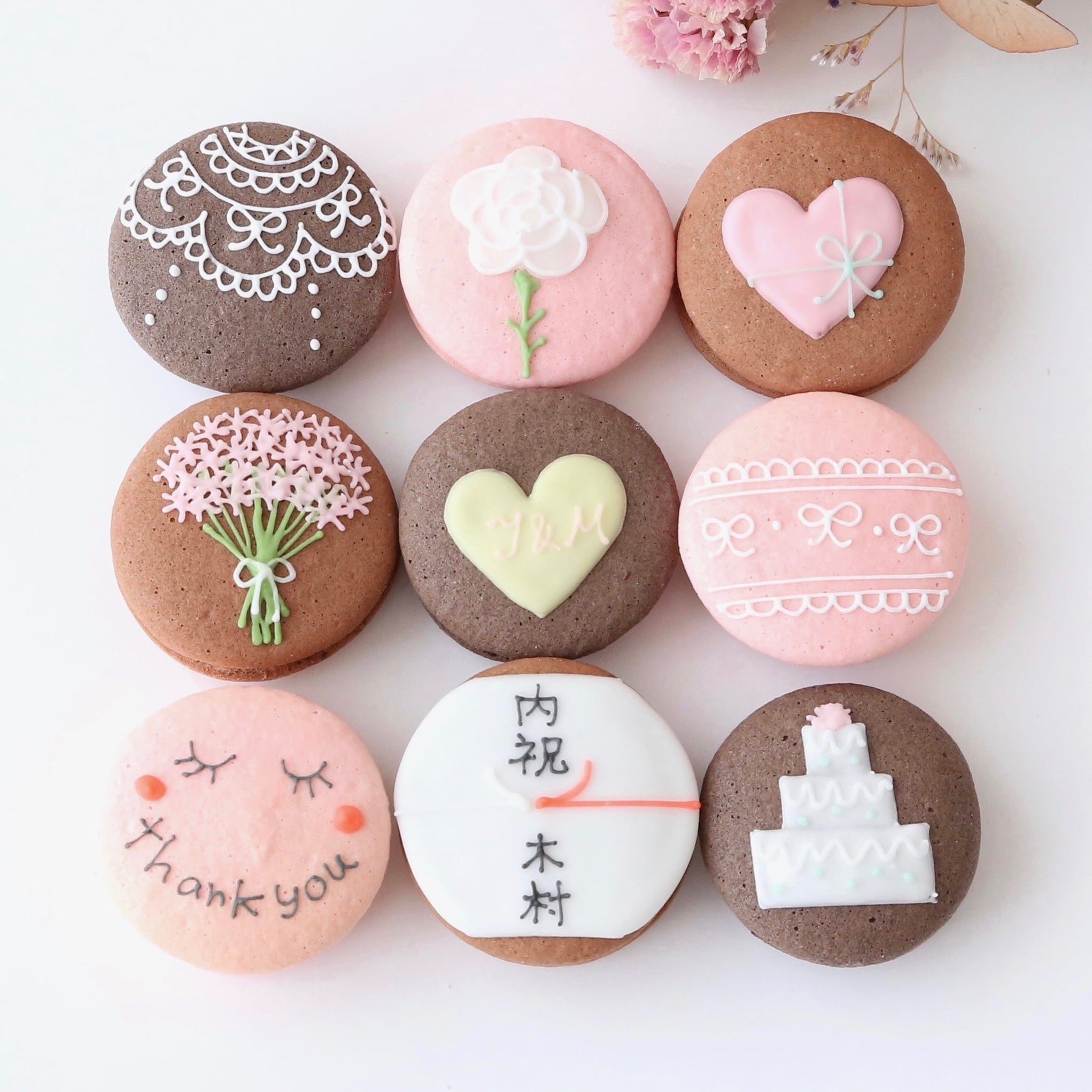 結婚のお返しにピッタリの可愛いイラスト入りマカロンセットです(ラッピング代込み)