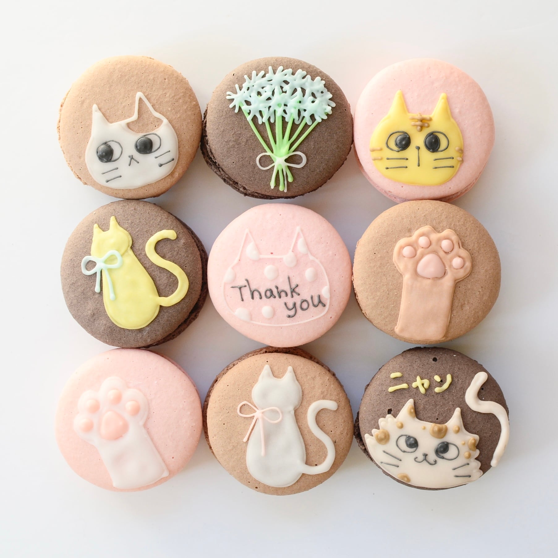 ネコ好きにはたまらない♡可愛いイラスト入りマカロンセットです(ラッピング代込み)